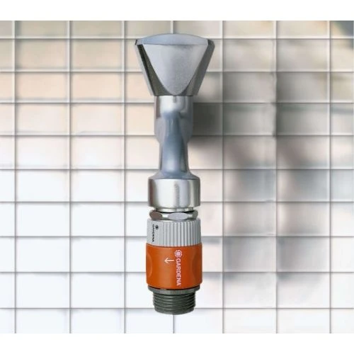 Cet adapteur automatique est fait pour brancher rapidement un tuyau sur un nez de robinet ou un article à filetage. Il est destiné pour filetages 20/27. Il est conçu à l’épreuve des enfants et est seulement libéré par le vrillage.