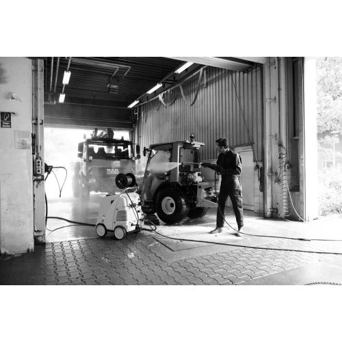 Le nettoyeur haute pression à eau chaude Kränzle Therm C 15/150 4800 W dispose d’une format compact pour une pression de service jusqu’à 180 bars. Il est équipé de roues tout-terrain de grand diamètre avec une large bandage en caoutchouc plein et béliers avant et arrière. Ce nettoyeur haute pression se compose également d’une coupe-circuit automatique, d’un contrôleur de débit et d’une coupure du bruleur en cas de manque de carburant.