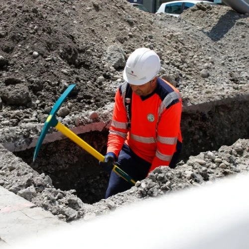 La pioche terrassier Batipro de la marque Leborgne est fabriquée en acier trempé haute résistance. Elle est dotée d’un manche tri-matière Novamax : polypropylène, élastomère et fibre de verre, qui mesure 1 m. En cas de rupture, ce manche aide à éviter les risques de chute et de blessure causée par cette rupture du manche ou la projection de sa tête sur l’utilisateur. Sa pointe cruciforme est extra-dure, et très résistante à l’usure. Cet outil est parfaitement adapté pour creuser et racler les tranchées grâce à sa panne à bords droits. Sa surface de frappe latérale peut servir pour planter des piquets sur le chantier.