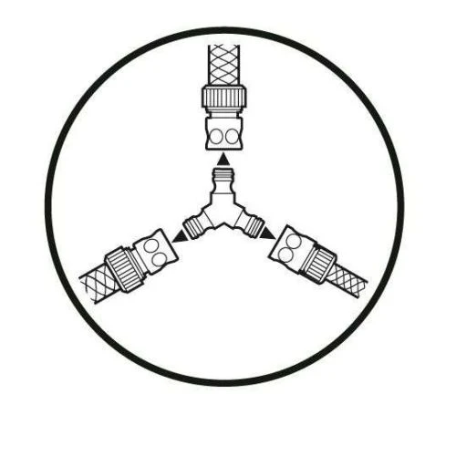 La dérivation en Y permet de dédoubler une installation d’eau et est utilisable avec des tuyaux d’arrosage de 13 à 19 mm.