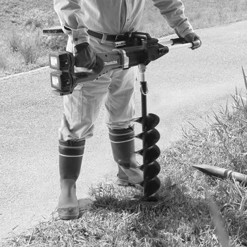 Cette tarière DDG460ZX7 36 V est équipée d’un moteur sans balais à frein électrique, d’une commande de déclenchement à vitesse variable et d’une lampe de travail à LED. Pour un fonctionnement optimal, la technologie d’entraînement automatique du couple permet un changement automatique de la vitesse de coupe en fonction des conditions de charge. Par ailleurs, le débrayage de sécurité garantit la sécurité en cas de blocage soudain de la tarière. Cette tarière 36 V est idéale pour percer des trous jusqu’à 200 mm dans un sol sableux et 150 mm dans un sol lourd.