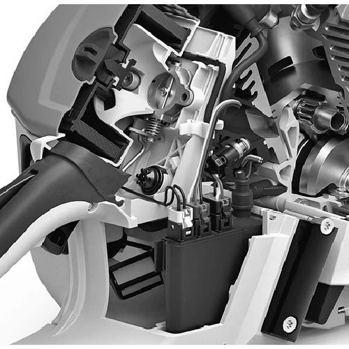 - La technologie d’injection Stihl permet à la MS 500i d’atteindre des performances extrêmement élevées avec une cylindrée extraordinairement faible et un faible poids. La tronçonneuse utilise une technologie innovante pour atteindre une accélération rapide de 0 à 100 km / h en seulement 0,25 secondes. Elle est prête à être utilisée immédiatement. Les capteurs mesurent la pression de l’air et la température interne et externe, et transmettent les informations à l’unité de contrôle.